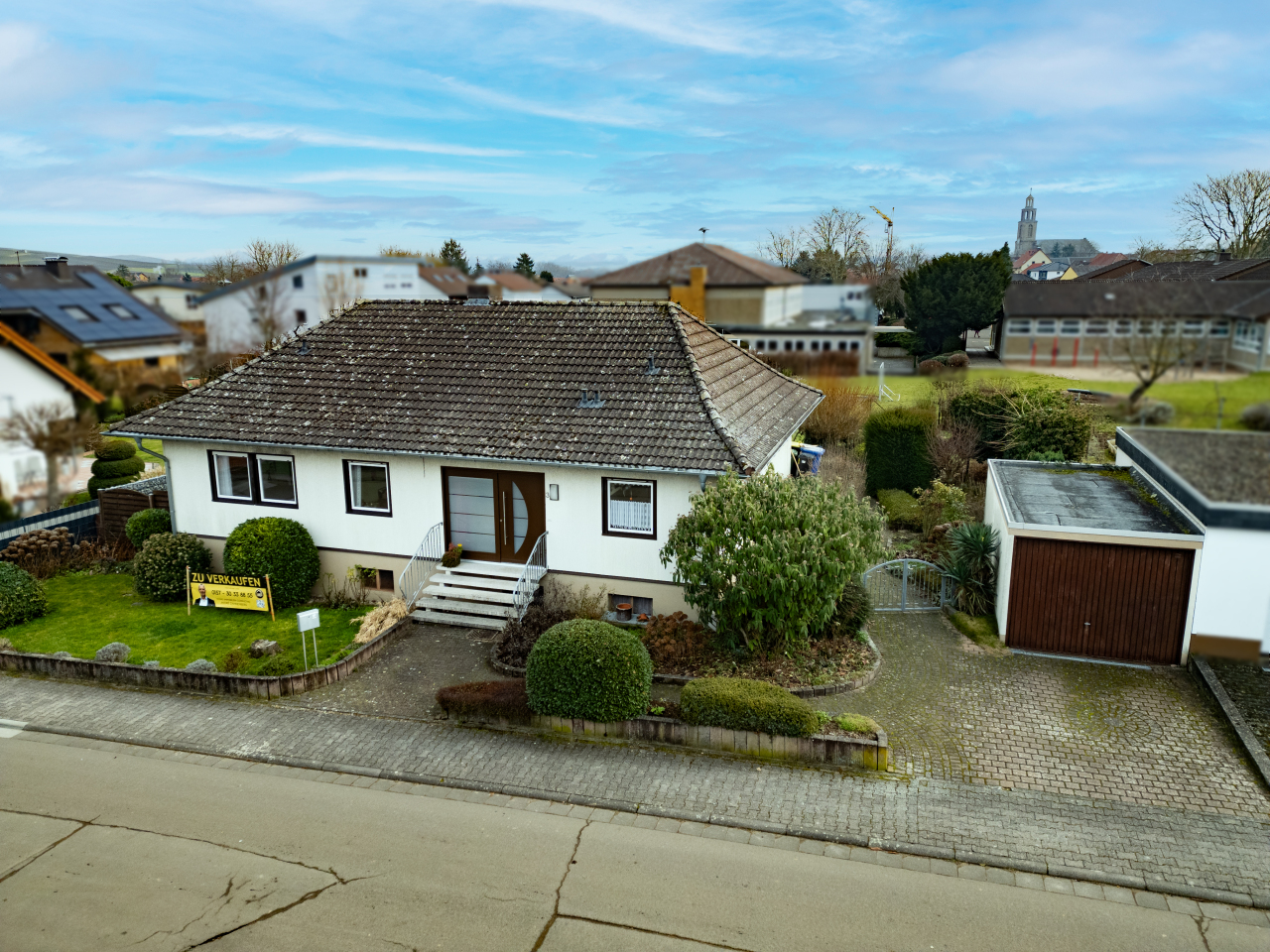 Dieser Okal Fertighausbungalow steht in ruhiger Lage von Gau-Bickelheim zum Verkauf: