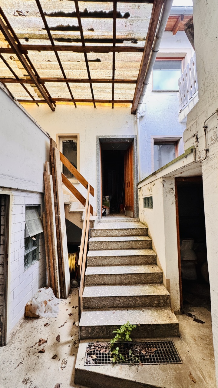 Das Haus ist an drei Seiten an die Nachbarbebauung angrenzend. Die 6 Räume der Wohnung verteilen sich auf verschiedenen Ebenen über rund 114 m² Fläche und sind über einen kleinen Innenhof miteinander verbunden.