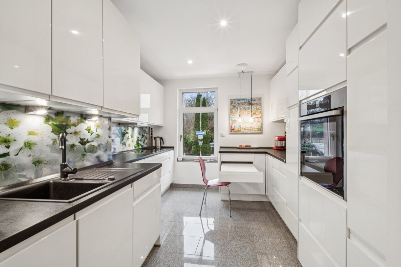 1898 erbaut wurde es ursprünglich als 3 Familienhaus genutzt. Durch eine aufwendige Sanierung des gesamten Hauses und einen Ausbau wurden zwischen 2019 und 2021 Erd- und Obergeschoß zu einer hochwertigen Maisonettewohnung vereinigt, die auf rund 120 m² Wohnfläche 4 Zimmer, Küche, 2 Bäder, Balkon und, über eine überdachte Terrasse, Zugang zu einem kleinen Gärtchen bietet. Edle Granitböden und Eicheparkett lassen Ihr Herz hier höher schlagen.